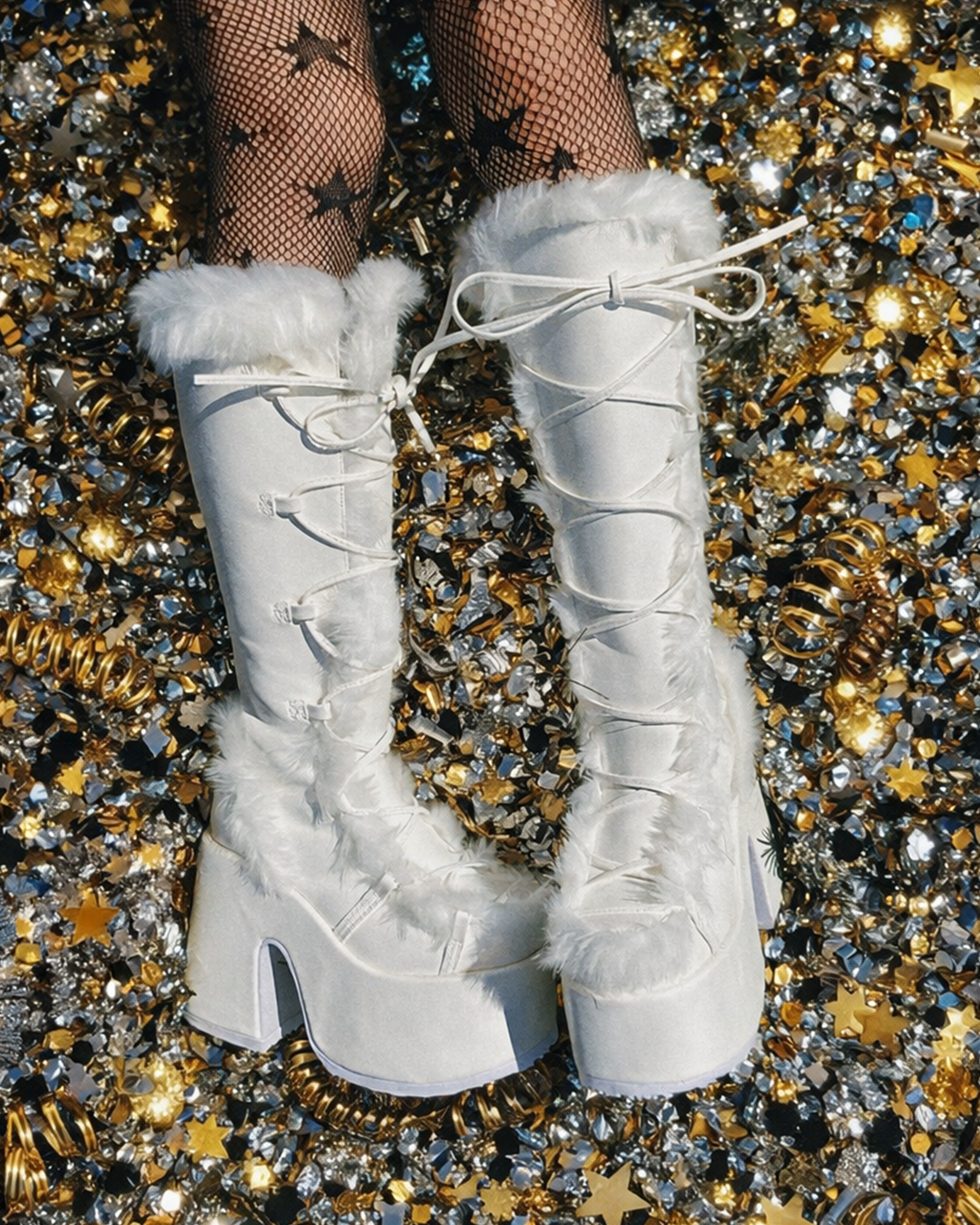 Step into bold style with the Camel-311 black faux suede knee-high boot. Designed with a striking 5 inch (12.7 cm) platform, this boot delivers height, confidence, and standout appeal. The soft faux fur lining and upper trim add both warmth and a touch of luxury, while the full inner side zipper makes slipping them on and off effortless.