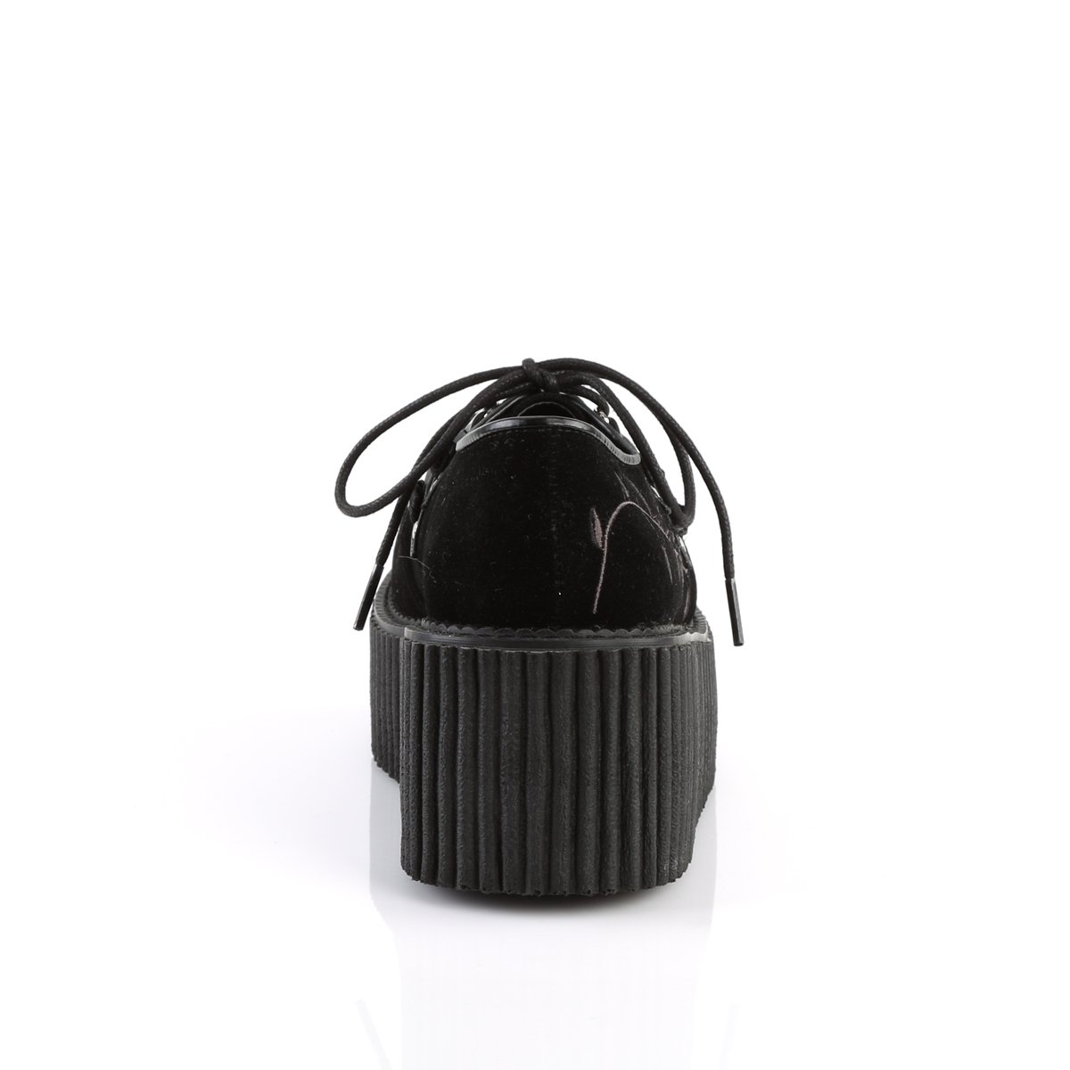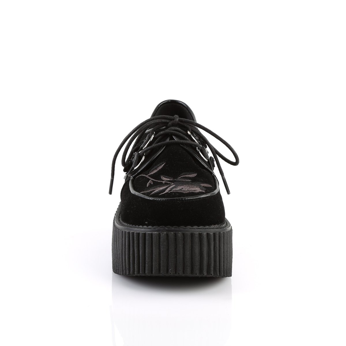 Classic style 3" (75mm) platform lace up creeper featuring an embroidery flower.