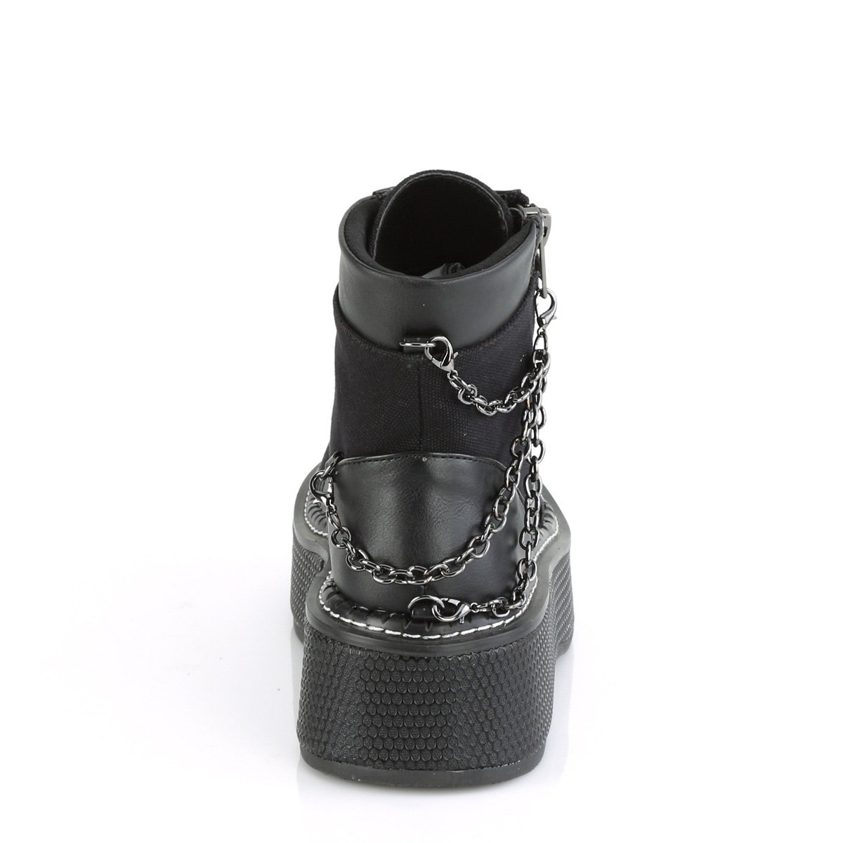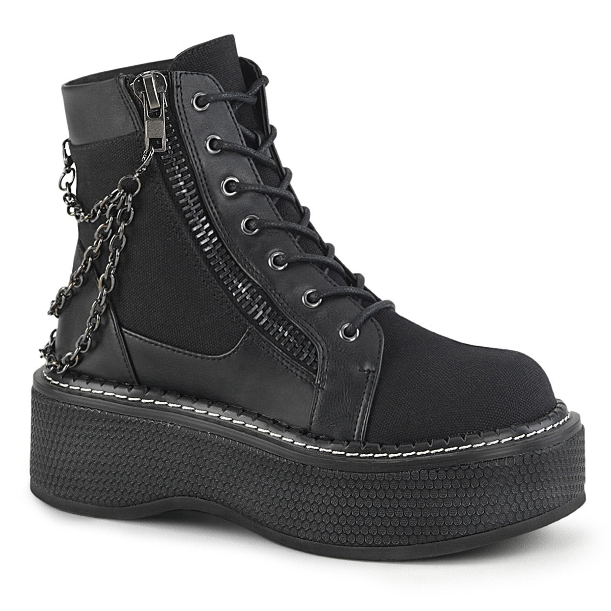 Edgy 2" (51mm) platform lace-up front bootie with padded ankle collar, clip-on back chain detail and outer metal zipper.