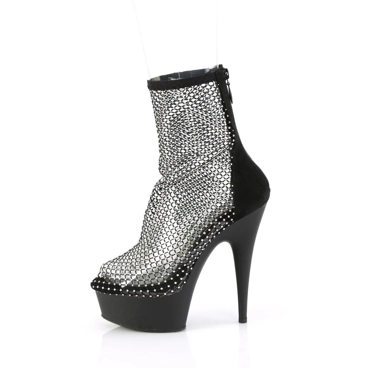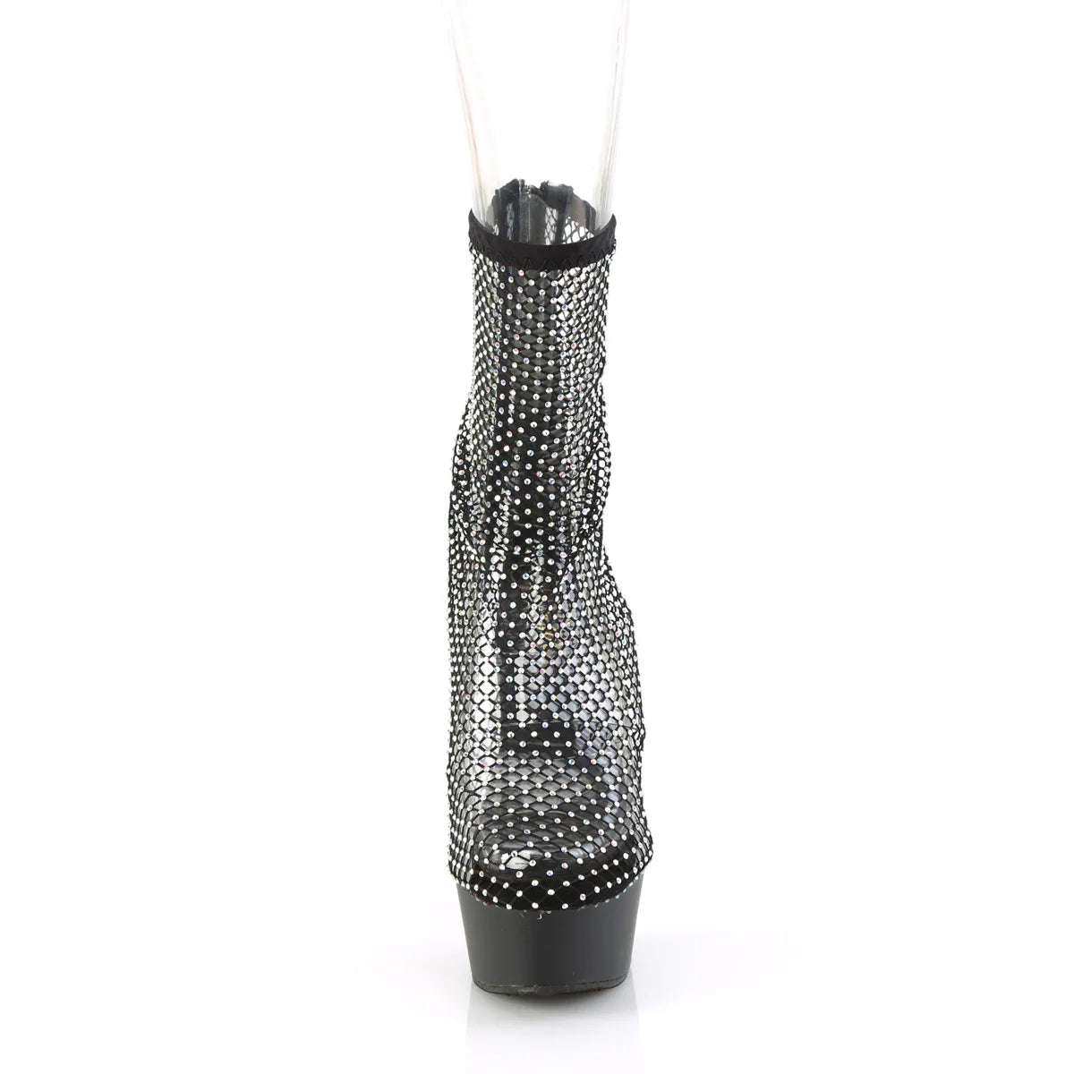 Light up the night in these 6" (152mm) heel, 1 3/4" (45mm) platform ankle boots designed to dazzle. Featuring stretchable AB rhinestone mesh fabric and a sleek back zip closure, they're made for bold moves and brighter vibes.