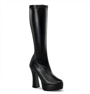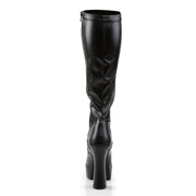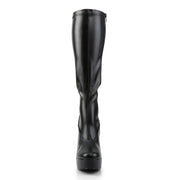 Pull-on boots with stretch top that wraps the leg for a perfect fit, preformed bottom for a comfortable wear, 5 inch (14 cm) '70s style heels and a matching front platform which measures 1.5 inch (4 cm). Stable, comfortable and provocative, they are perfect for dress-ups and thematic looks.