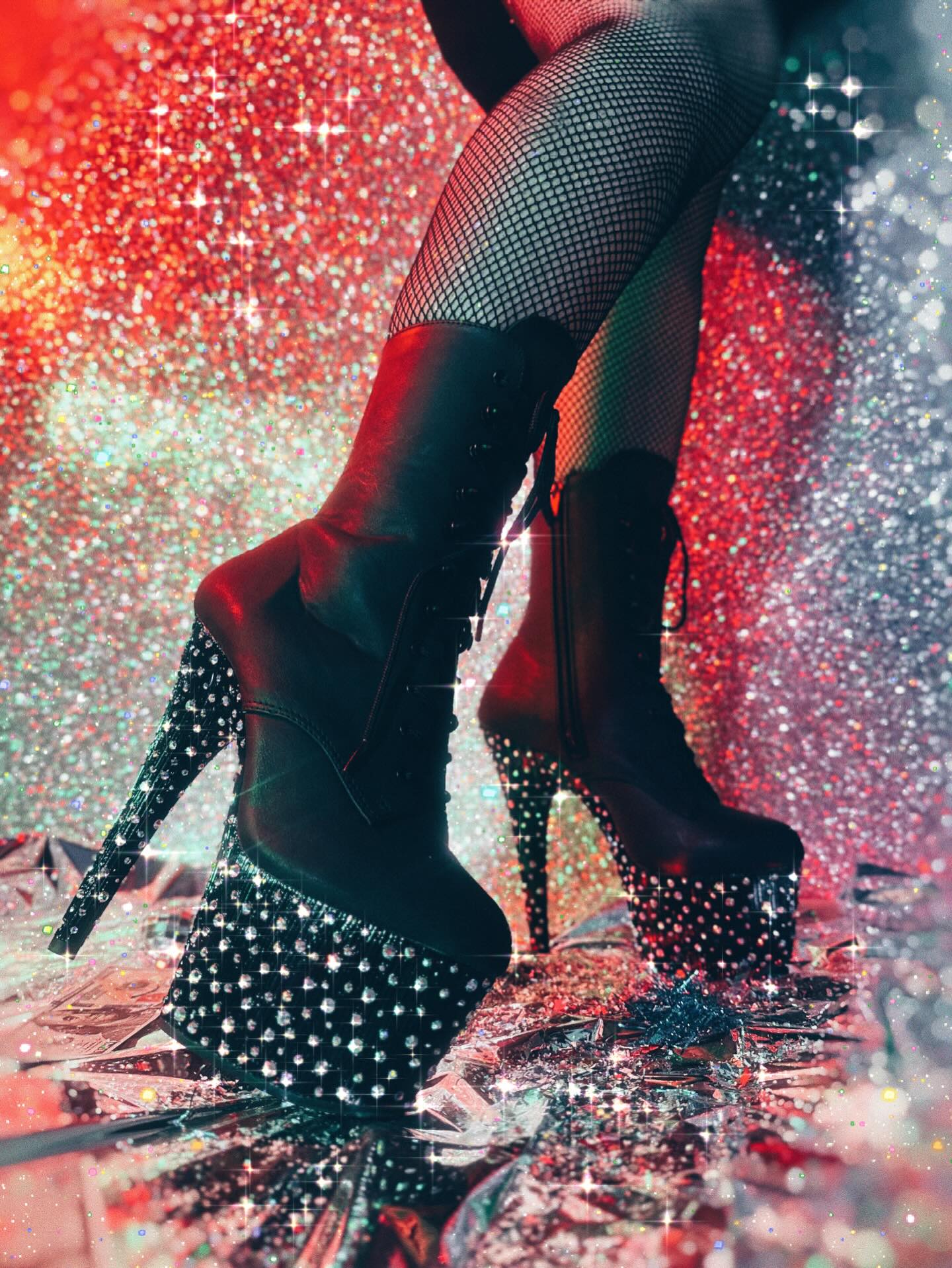 This ankle boot boasts a dramatic 7" heel and 2 3/4" platform, with a stunning lace-up front and rhinestones encrusted along the entire platform. An inner side zip makes it easy to slip on, adding both style and convenience to your look.